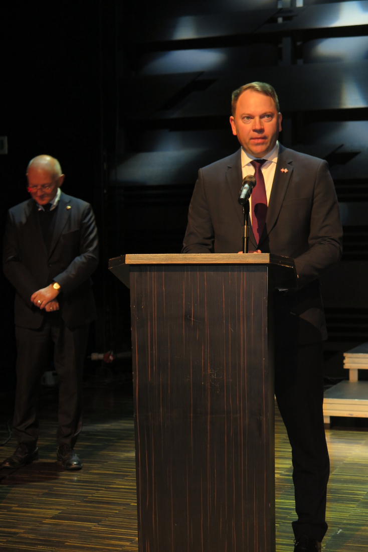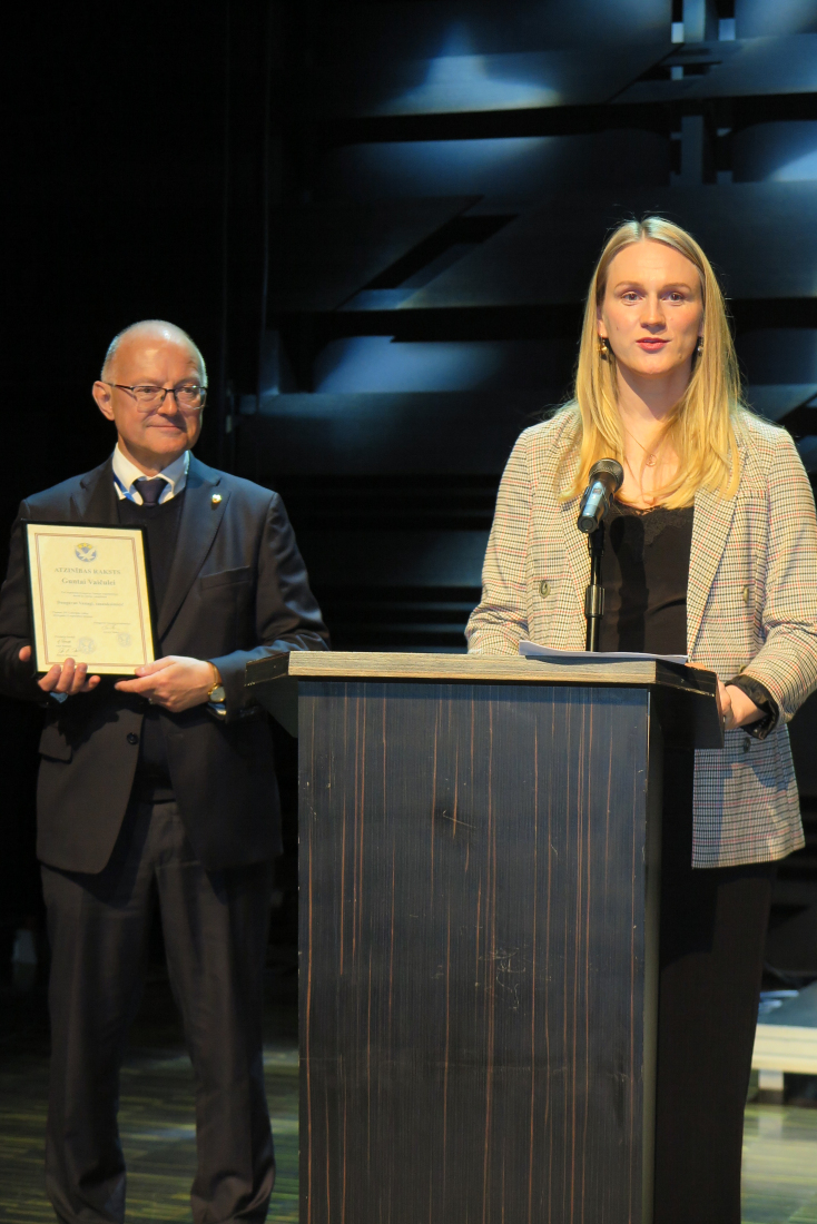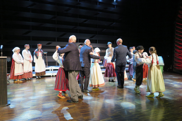 Vēl starp sveicējiem bija pārstāvji no partneru organizācijām: Valda Liepiņa - Latvijas Okupācijas muzeja biedrības valdes priekšsēdētāja, Ilze Golvere - Latvijas Audžuģimeņu biedrības vadītāja un Raits Eglītis - PBLA izpilddirektors. Ļoti skaists moments bija DV CV atzinības raksta pasniegšana olimpietei un bijušai vanadzēnei Guntai Vaičulei. Gunta sirsnīgā uzrunā stāstīja par savu pieredzi starptautiskos čempionātos ārzemēs, kad allaž kāds tomēr bija klāt ar Latvijas karogu un latviešu sveicienu. Gunta bija ļoti pateicīga, par šo atbalstu no latviešiem plašajā pasaulē, kā arī pateicās Daugavas vanagiem un vanadzēniem par sniegto atzinību.